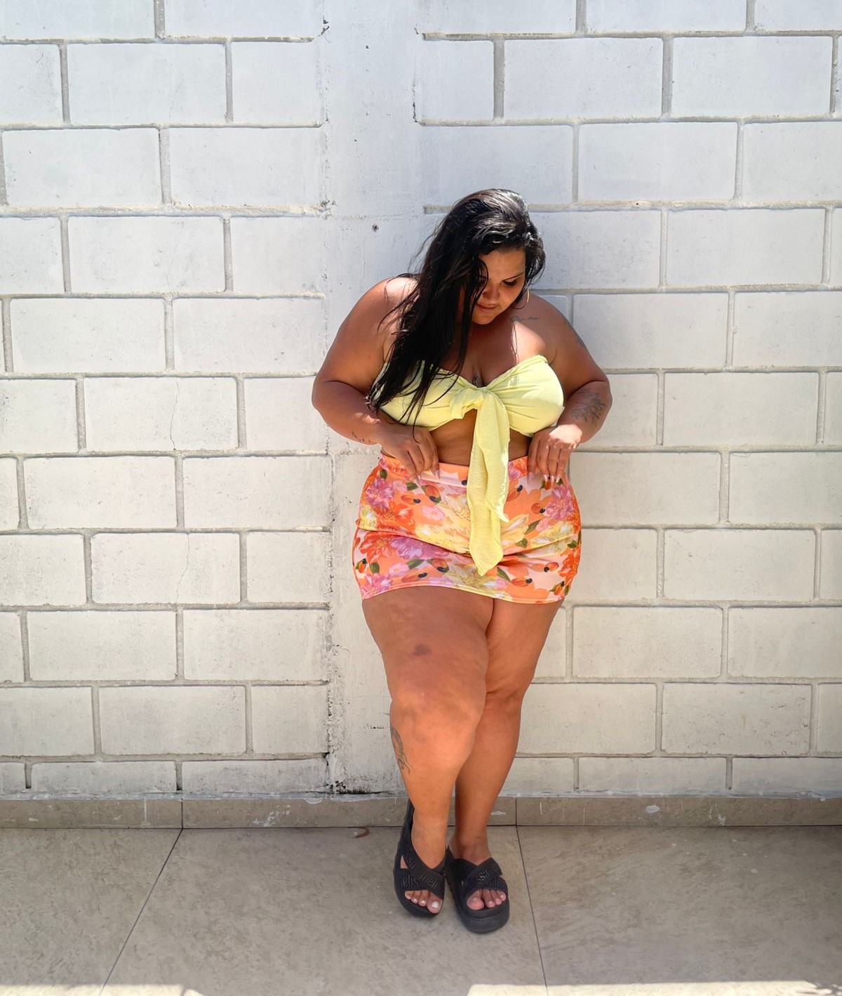 O conjunto floral é a definição de frescor e estilo para os dias mais quentes. Com top em amarração frontal que valoriza o busto e traz um toque moderno, combinado com saia justa de cintura alta com estampa floral, ele realça as curvas de forma confortável e super feminina.