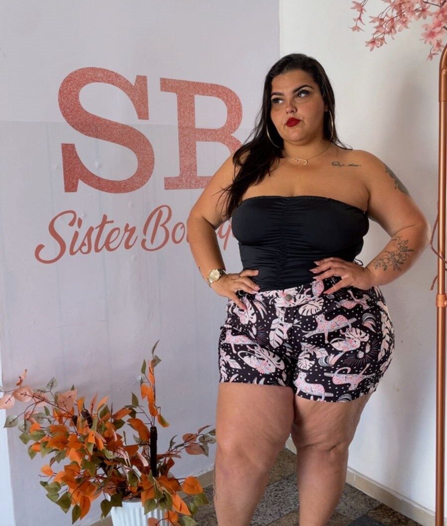 O short estampado é perfeito pra quem ama um look moderno sem abrir mão do caimento perfeito.