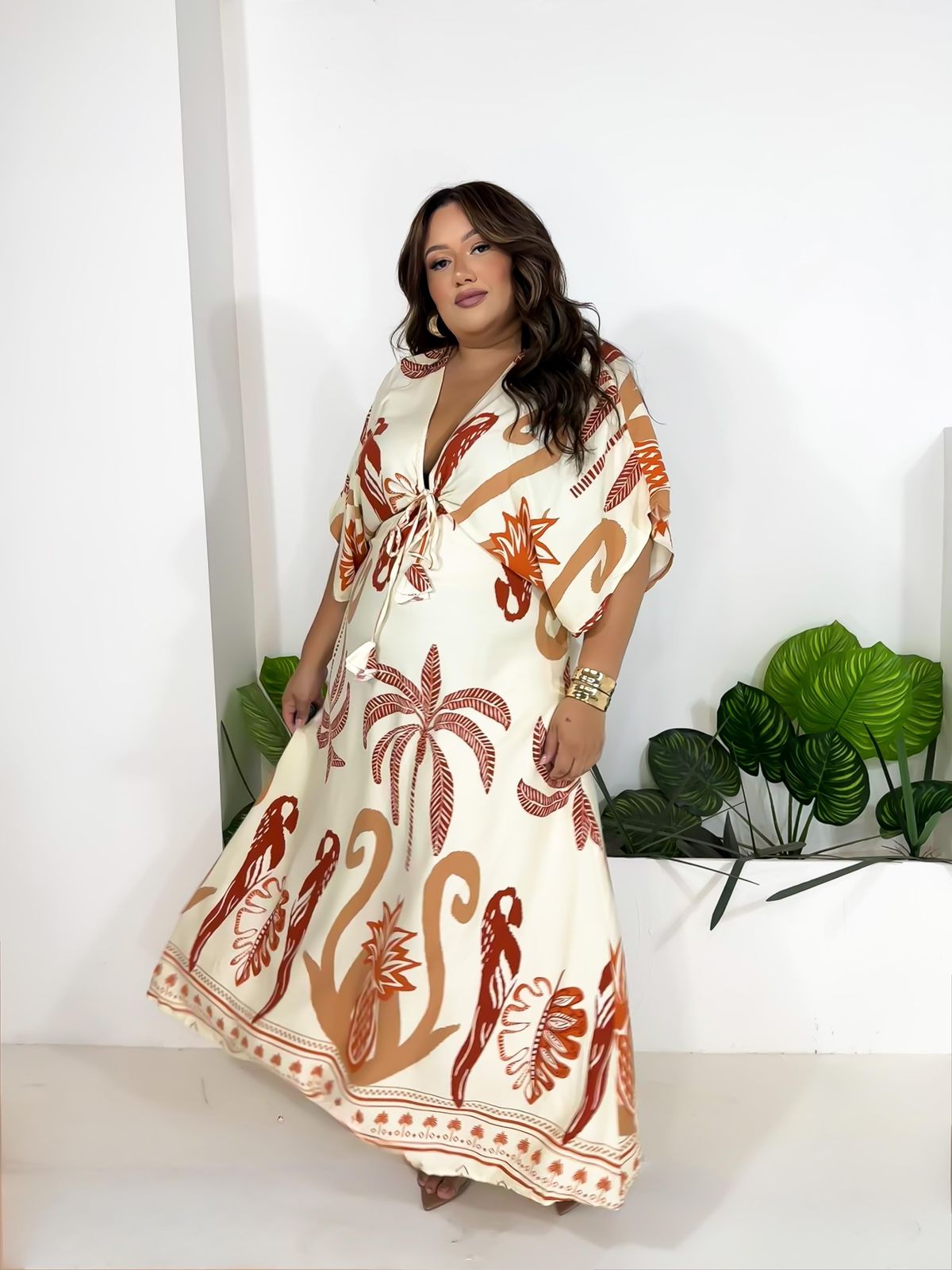 Um vestido que é uma verdadeira obra de arte vestível, pensado para mulheres que amam peças exclusivas e que carregam história. Este longo combina o conforto de uma modelagem ampla com a riqueza de uma estampa única.